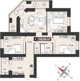 Просторная 3-комн. квартира с предчистовой отделкой в ЖК "8 Марта" на 10 этаже. Общая площадь: 116.96 кв.м., жилая: 45.95 кв.м., площадь просторной кухни-столовой: 19.66 кв.м. Угловая квартира, идеально подойдет любителям тишины и панорамных видов. В квартире две лоджии, один раздельный санузел. Высота потолков 2.7 м.