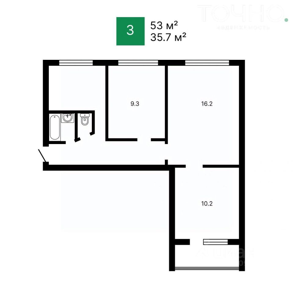 - Общая площадь 53 кв м (без учета лоджии)