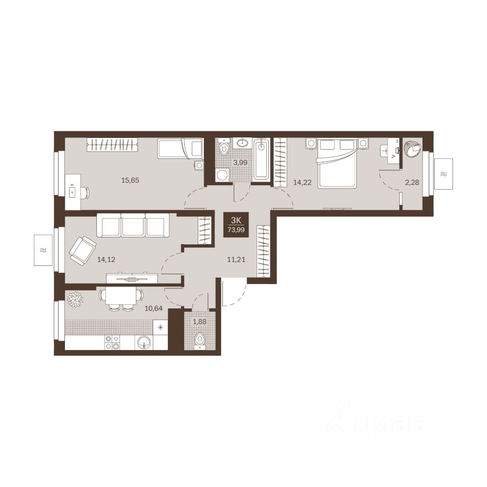 Общая площадь73,99 м²