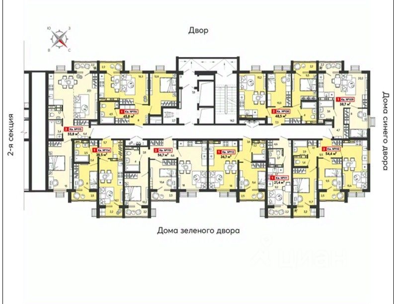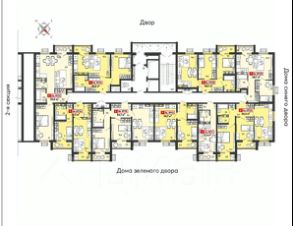 Двор в каждом жилом комплексе закрытый, поэтому двор превратится в большую зеленую зону отдыха: здесь посадят деревья, цветы, кустарники, построят детские площадки, лавочки и беседки.