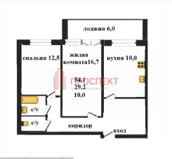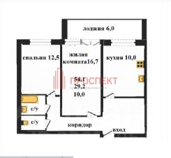 Общая площадь квартиры -54,1 кв м