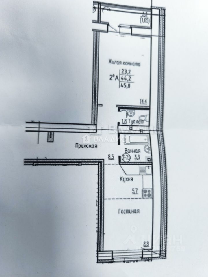 45,8 м²