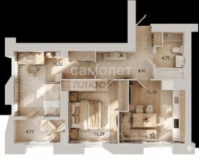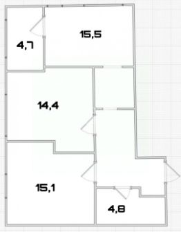 Жилая площадь: 30 м² (15,5 м2 + 14,5 м2)