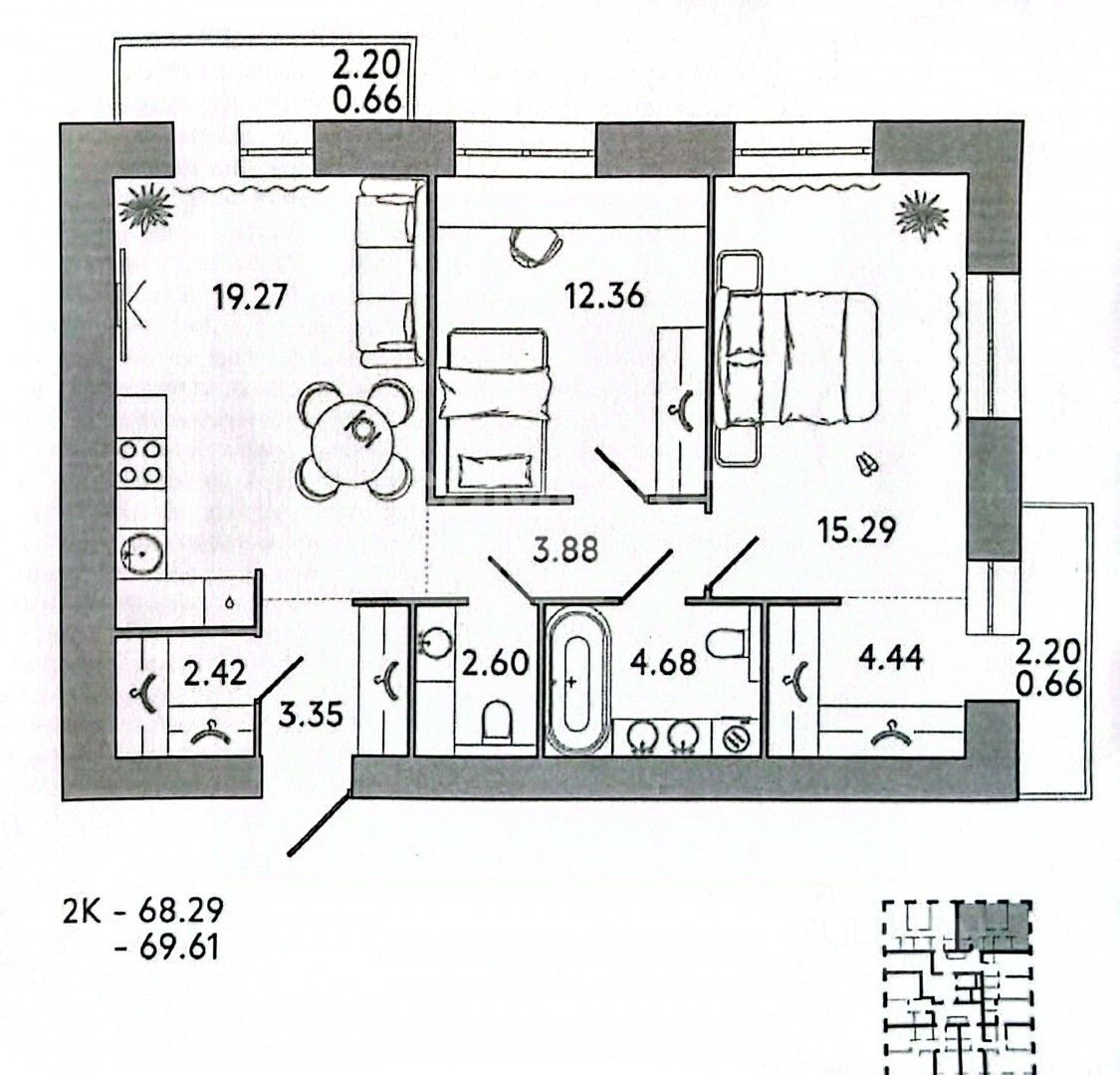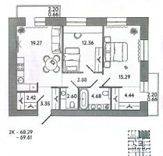 Общая площадь 69 кв.м.