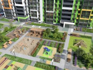 Уникальное благоустройство дворов. Планируются изолированные площадки с игровыми комплексами для детей разного возраста (отдельно - до пяти лет и старше), воркаут-зона с тренажерами, беседки для отдыха взрослого населения.