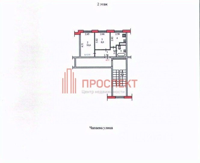 Квартира расположена на 2 этаже 3 этажного жилого дома улица Чапаева, 123.