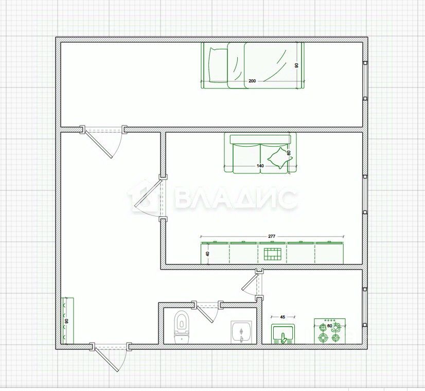 Общая площадь 41,8 кв.м.