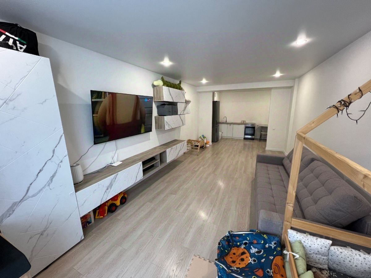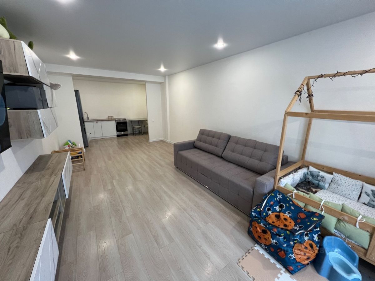 В квартире выполнен современный ремонт, который создает атмосферу уюта и комфорта. Основное пространство объединено, но может быть и разделено на зоны по вашему дизайну.