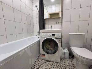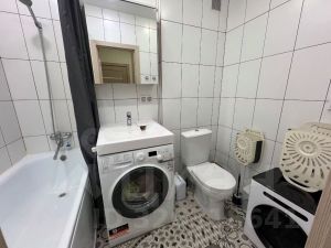 Санузел совмещенный в кафеле светлых тонов. Установлен кондиционер.