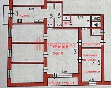 Площадь комнаты 13,5 кв. м. + просторный общий холл 28.6 кв.м. с выходом на балкон.