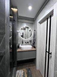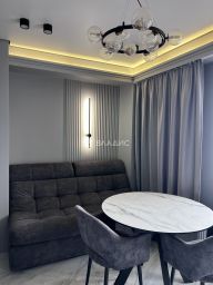 Код объекта: 1768587. Предлагается Вашему вниманию уникальная 2-комнатная квартира по ул. Генерала Глазунова, 6. Общая площадь 65 кв.м. Кухня 13 кв.м. Комнаты 14 и 17 кв.м. Гардеробная. В чем уникальность квартиры ? В квартире выполнен дорогой, качественный, дизайнерский ремонт. В кухне установлена хорошая техника , вся техника встроенная, индукционная плита, вытяжка, посудомоечная машина, духовой шкаф, микроволновка, а так же встроенная отдельно морозильная камера и отдельно холодильная камера. Качественный кухонный гарнитур .Фасады выполнены из МДФ + СОФТ ТАЧ пленка. Стены в кухне и коридоре крашены водостойкой краской, потолки во всей квартире натяжные белые матовые, освещение комбинированное, споты, люстры, настенные светильники и диодные ленты. В детской на одной стене поклеена фреска под индивидуальный заказ.Установлены декоративные панели на стене и по периметру комнаты , на панели установлено стекло в пол с диодной подсветкой по периметру и подвесная консоль, так же по индивидуальному заказу, над кроватями висят светильники фирмы , люстра имитирующая облачко фирмы , а так же белые споты. В спальне по одной из стен установлены декоративные панели с подсветкой такой же фирмы как и в детской, зеркало в пол с подсветкой и подвесной консолью изготовленной под заказ, установлен небольшой шкафчик в колонну, поклеены очень плотные качественные обои, имитация декоративно штукатурки. На лицевой стене поклеена фреска на индивидуальный заказ . В спальне имеется вход в гардеробную с установленной дверью скрытого монтажа. Во всей квартире установлены качественные, дорогие двери с панелями в потолок и скрытыми петлями. В кухне и коридоре на полу положен керамогранит размером 120х60 В спальне и детской положен водостойкий ламинат, 33 класса. В сан узле стены выложены комбинированным большим керамогранитом . Дверь в душевую установлена из ударопрочного закаленного черного стекла под индивидуальный заказ, инсталляция ,встроенный в стену смеситель , тумба под индивидуальный заказ , накладная раковина. В каждой комнате рядом с окном установлены розетки под гирлянды. Квартира полностью делалась под себя, продуманно все до мелочей, материалы покупали все качественные, не дешевые. Еще из плюсов кроме качественного дизайнерского ремонта, тихие и дружные соседи, школа прямо во дворе, множество разных магазинов в доме, очень красивый вид из окна и балкона в вечернее время, город как на ладони. Не смотря на большой дом, место на парковке всегда находится. Бонусом отправим дизайнерский проект со всеми чертежами и визуализацией, по проекту не был установлен учебный стол и шкаф в детской, а так же шкаф в коридоре, с помощью проекта мебель можно до установить со всеми указанными размерами. Остались вопросы ? Просто позвоните и запишитесь на просмотр )