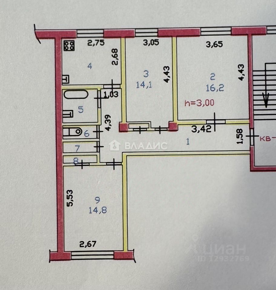 Изолированные комнаты (16,2 + 14,1 + 14,8 кв. м) и высота потолков в 3 метра создают ощущение простора и свободы.