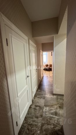 Общая площадь квартиры 73,4 кв. м, жилая площадь— 45,1 кв. м, площадь кухни — 7,4 кв. м.
