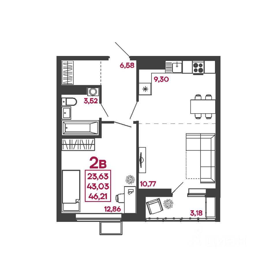 Общая площадь46,21 м²