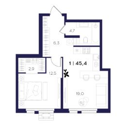 Общая площадь45,4 м²