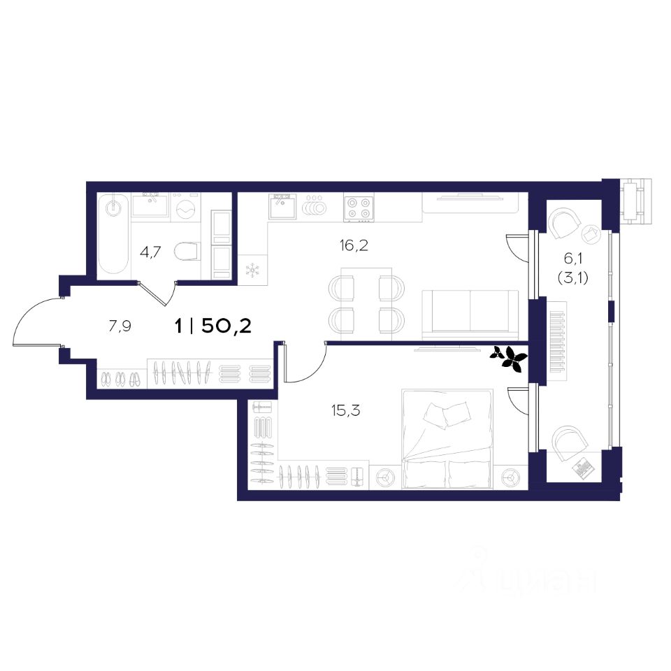 Общая площадь50,2 м²