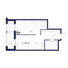 Общая площадь51,4 м²