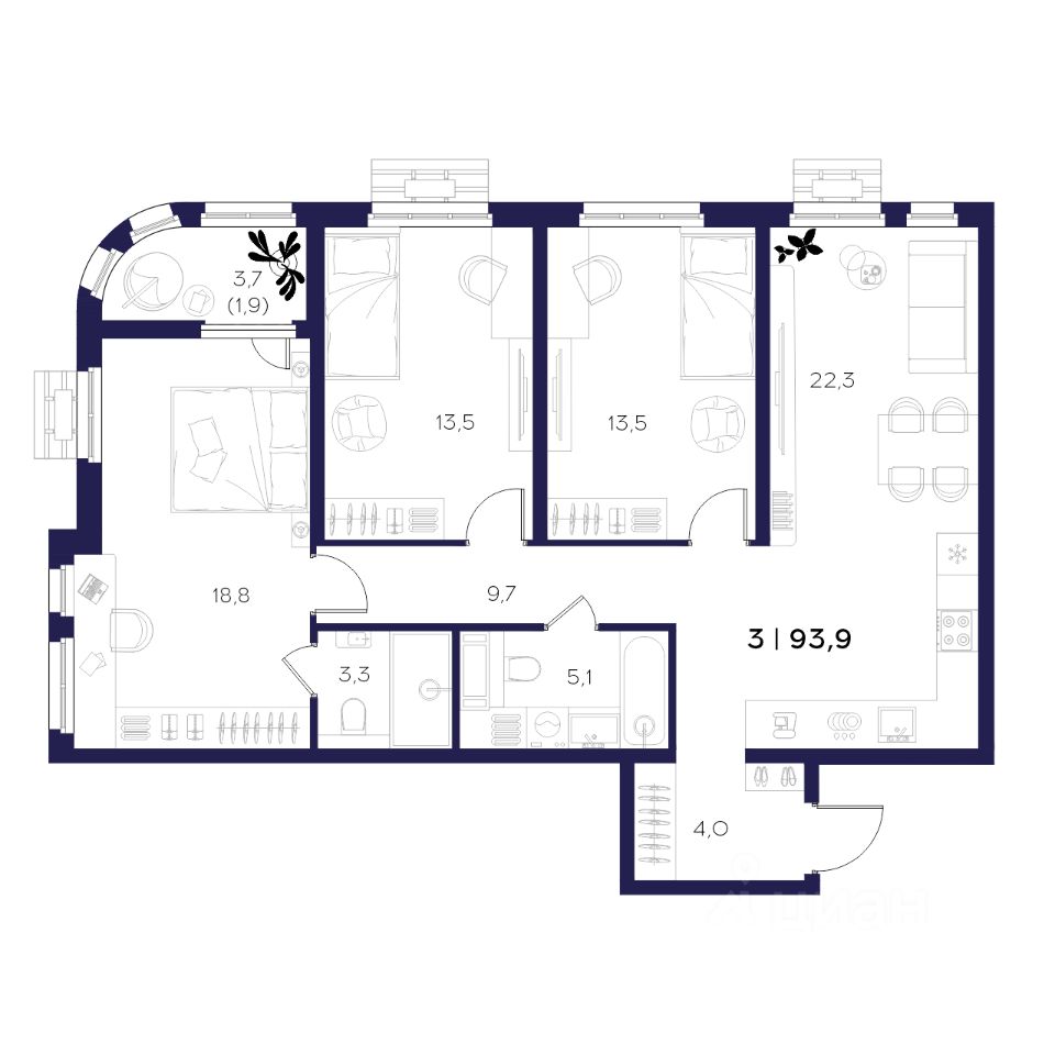 Общая площадь93,9 м²