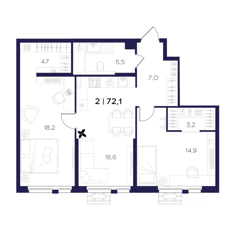 Общая площадь72,1 м²