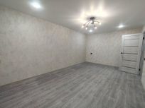 Произведен капитальный ремонт: заменена электропроводка, выровнены стены, полы. Установлены пластиковые окна, межкомнатные двери, натяжные потолки с точечным освещением и современной люстрой. Напольное покрытие линолеум.