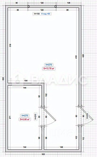 - Общая площадь: -18,1 кв. м.