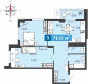 Продается 3-комн. квартира с европланировкой и предчистовой отделкой в ЖК "Созвездие" на 14 этаже. Общая площадь: 71.63 кв.м., жилая: 41.74 кв.м., общая площадь гостиной-столовой с кухонной зоной: 17.56 кв.м. Европланировка, кухня-гостиная - идеальный вариант для тех, кто любит часто принимать гостей. Угловая квартира, идеально подойдет любителям тишины и панорамных видов. В квартире один балкон, один раздельный санузел. Высота потолков 2.7 м.
