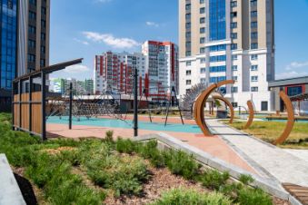 Двор закрытый, с уникальным благоустройством: тематические детские площадки, зоны спорта, необычные арт-объекты и прогулочные аллеи в окружении зелени.