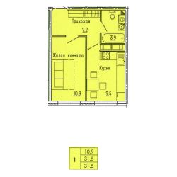 Продаётся 1-комнатная квартира в сданном доме (дом 16), срок сдачи: I-кв. 2024, общей площадью 31.5 кв.м., на 3 этаже. Дизайнерская отделка.