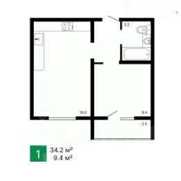 Общая площадь - 34,2 кв.м. без учета лоджии