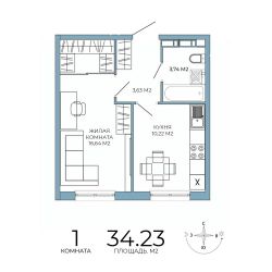 Продаётся 1-комнатная квартира в строящемся доме (дом 6), срок сдачи: IV-кв. 2026, общей площадью 34.23 кв.м., на 8 этаже. Дизайнерская отделка.
