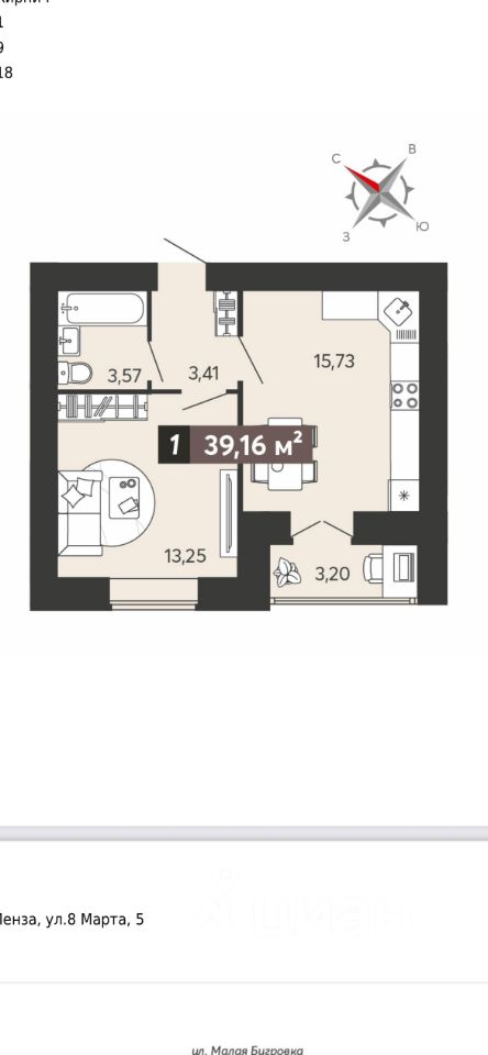Кухня 16 метров, комната 13 метров. Маленький квадратный коридор 3 метра. Вся площадь квартиры полезная.