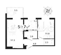 Общая площадь: 50,7 кв. м.
