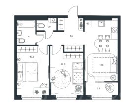 + Отличная планировка. Большие окна. Высота потолка 2.8 м. Кухня-столовая 17,5 кв.м. с застекленной отапливаемой лоджией, комнаты правильной формы 12,8+13,5 кв.м.,