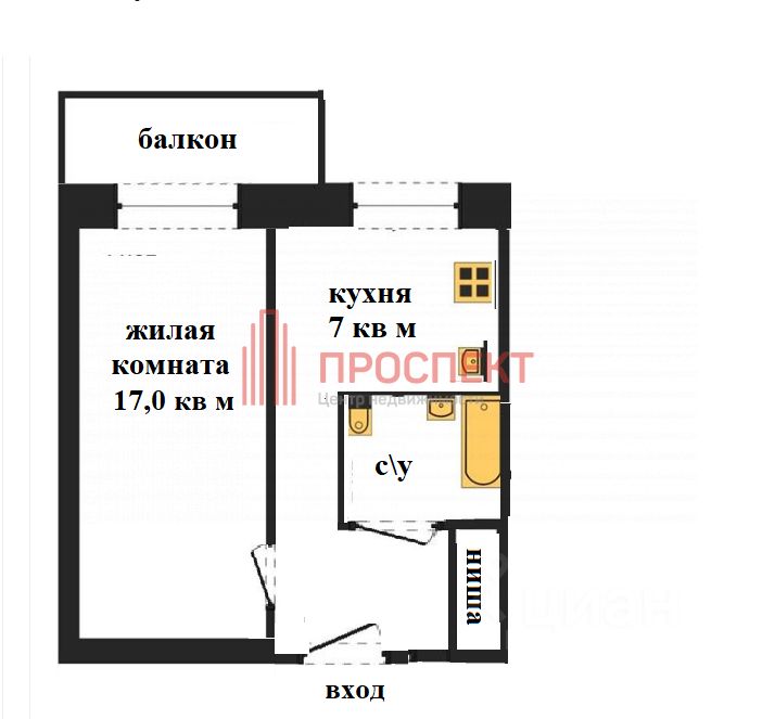 Общая площадь 30,5 кв м ( с балконом)