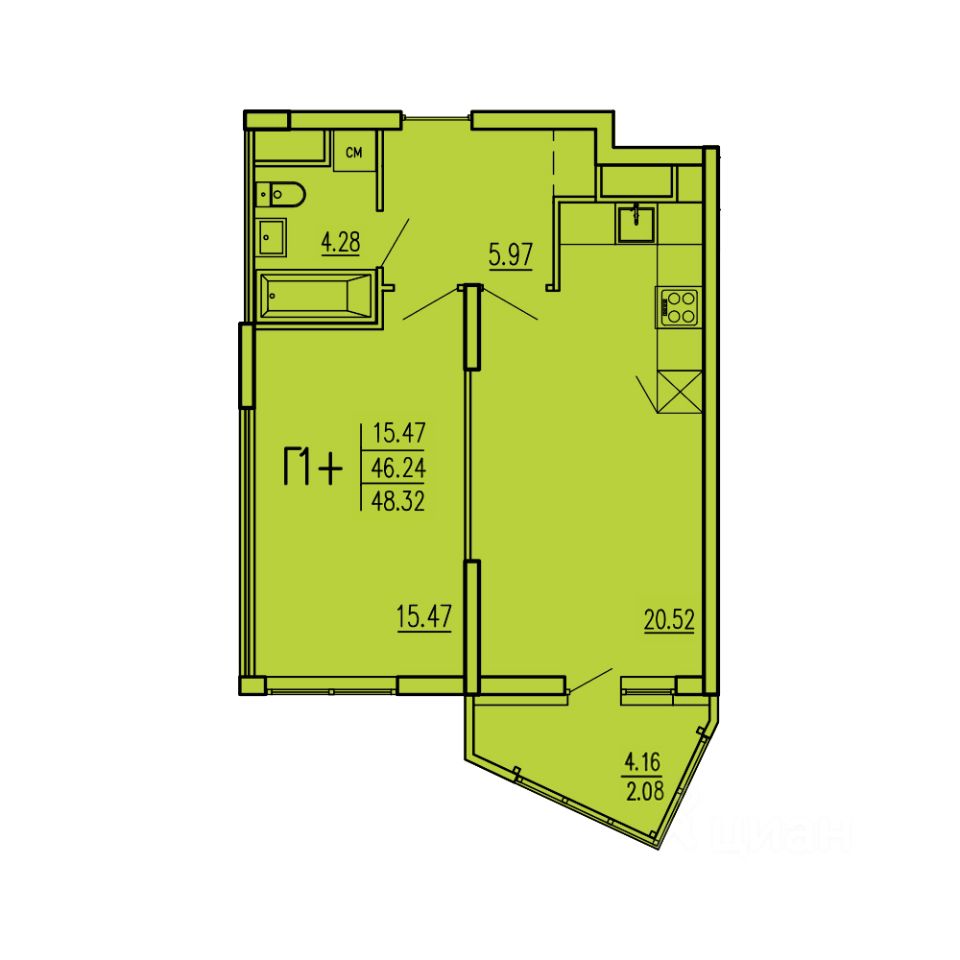 Продаётся 1-комнатная квартира в строящемся доме (Корпус 2), срок сдачи: II-кв. 2026, общей площадью 48.32 кв.м., на 2 этаже. "Акварель" - жилой комплекс в лесном массиве.