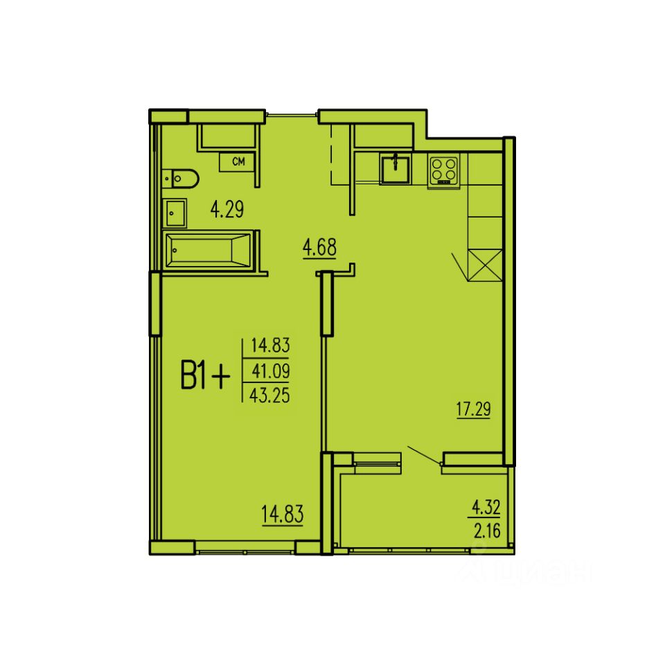 Продаётся 1-комнатная квартира в строящемся доме (Корпус 2), срок сдачи: II-кв. 2026, общей площадью 43.25 кв.м., на 16 этаже. "Акварель" - жилой комплекс в лесном массиве.