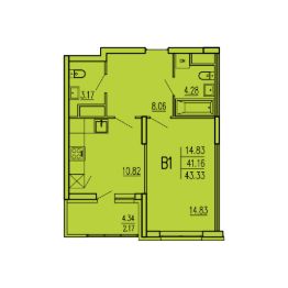 Продаётся 1-комнатная квартира в строящемся доме (Корпус 2), срок сдачи: II-кв. 2026, общей площадью 43.33 кв.м., на 8 этаже. "Акварель" - жилой комплекс в лесном массиве.