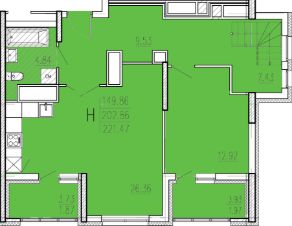 Продаётся 5-комнатная квартира в сданном доме (Корпус 1), срок сдачи: II-кв. 2024, общей площадью 221.47 кв.м., на 17 этаже. "Акварель" - жилой комплекс в лесном массиве.