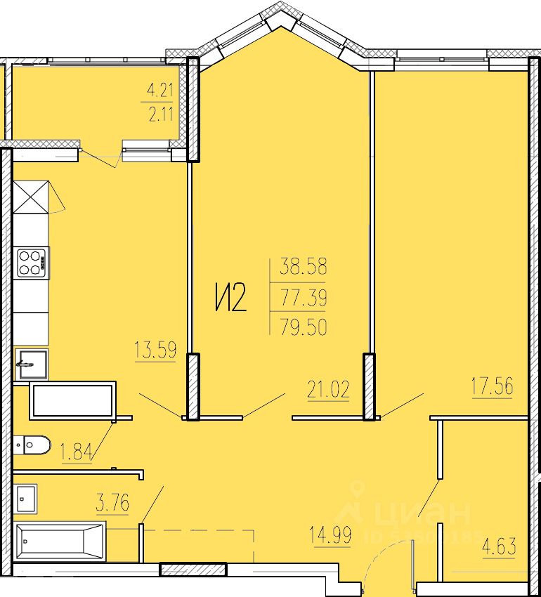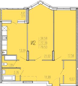 Продаётся 2-комнатная квартира в сданном доме (Корпус 1), срок сдачи: II-кв. 2024, общей площадью 79.5 кв.м., на 2 этаже. "Акварель" - жилой комплекс в лесном массиве.