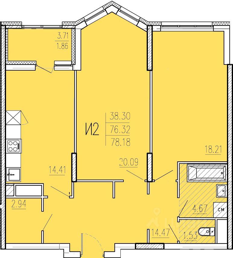 Продаётся 2-комнатная квартира в сданном доме (Корпус 1), срок сдачи: II-кв. 2024, общей площадью 78.18 кв.м., на 3 этаже. "Акварель" - жилой комплекс в лесном массиве.