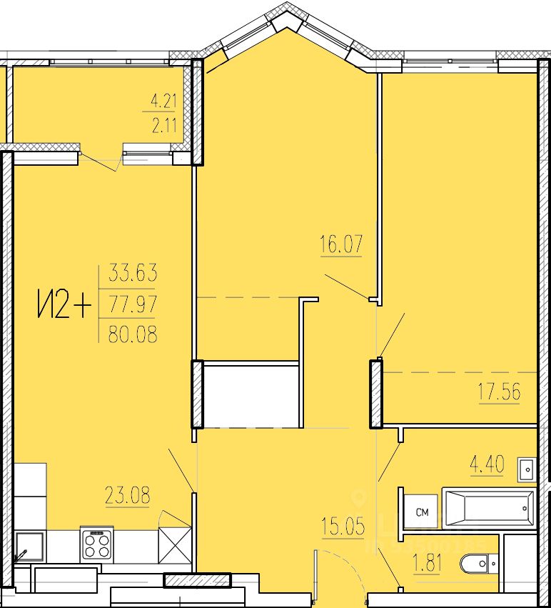 Продаётся 2-комнатная квартира в сданном доме (Корпус 1), срок сдачи: II-кв. 2024, общей площадью 80.08 кв.м., на 2 этаже. "Акварель" - жилой комплекс в лесном массиве.