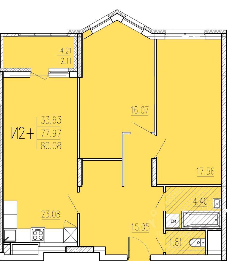 Продаётся 2-комнатная квартира в сданном доме (Корпус 1), срок сдачи: II-кв. 2024, общей площадью 80.08 кв.м., на 11 этаже. "Акварель" - жилой комплекс в лесном массиве.