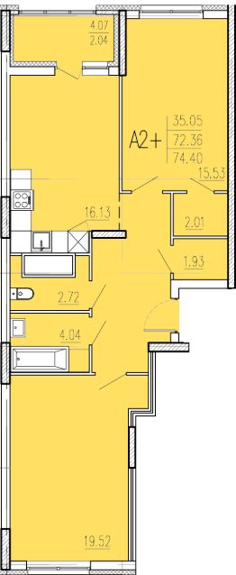 Продаётся 2-комнатная квартира в сданном доме (Корпус 1), срок сдачи: II-кв. 2024, общей площадью 74.4 кв.м., на 2 этаже. "Акварель" - жилой комплекс в лесном массиве.