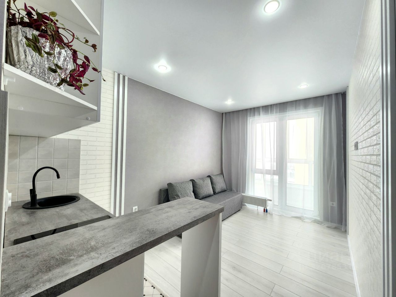 Лоджия остеклена, выведен свет. В ПОДАРОК ОСТАЕТСЯ ВСЕ!!!(Новая кухня, варочная поверхность, барная стойка, диван, встроенная гардеробная)