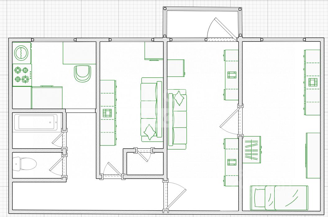 Жилая площадь: 42,2 м² с изолированными и смежными комнатами, что предоставляет возможность для гибкой организации пространства.