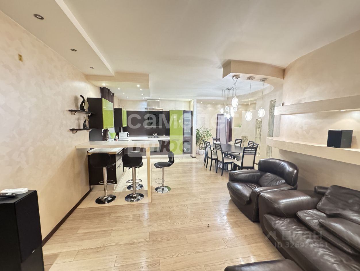 Арт. 131125847 Продается просторная трехкомнатная квартира площадью 107,5 м2 на 6 этаже 9 этажного кирпичного дома, расположенного по адресу Володарского 17, в самом историческом центре города Пензы. Общая площадь квартиры составляет 107,5 м2 + застекленная и утепленная лоджия 4.9м2 Площадь кухни-гостиной 35.6 м2 Жилая площадь 48.1м2 (10.1м2+16.8м2+21.2м2) В квартире выполнен дизайнерский ремонт. Установлен стильный двухуровневый потолок с встроенной подсветкой, в коридоре и кухне пол ламинат, рабочая зона кухни керамогранит, а также полы с подогревом. Вся мебель и техника на фото остается, а именно: барные стулья, двухместный кожаный диван, кресло, и пуф выполненные в одном стиле. Кухонный гарнитур, обеденный стол и стулья в темных тонах. Вся мебель сделана в Италии. Из техники остается: плазменный телевизор. Посудомоечная, стиральная машины от фирмы "Electrolux", а также духовой шкаф "Hansa", вытяжка "Elica" и домашний кинотеатр "Toshiba", Санузел раздельный, керамогранит. В ванной установлена гидромассажная ванная джакузи и биде. А также Бойлер. В спальной расположена двуспальная кровать, шкаф купе, а также комод бежевого цвета и плазменный телевизор. Есть выход на застекленную лоджию. Пробковый пол, что обеспечивает дополнительную звукоизоляцию и комфорт. В детской комнате просторная детская кровать, а также шкафы и комоды единого розового цвета. И также пробковый пол. В кабинете на полу ламинат, остается компьютерный стол. В шаговой доступности объекты культурного наследия, такие как: Пензенский государственный краеведческий музей, сквер Кукушка, Музей имени И. Н. Ульянова, Пензенская областная картинная галерея имени К.А. Савицкого, Церковь Сошествия Святого Духа. Также торговые центры "Пассаж", "Высшая Лига", магазины Пятерочка, Караван, салон красоты Beauty House, кафе и рестораны " Лобби Лайф", "Любимая Сова", "Купеческий", "ProТесто", а также образовательные учреждения Гимназия 4 Ступени, Пензенский колледж архитектуры и строительства, Детская художественная школа 1 им. В. Е. Татлина, Средняя общеобразовательная школа 49 имени 354-й Калинковичской ордена Ленина, Краснознаменной, ордена Суворова стрелковой дивизии. Закрытая территория с современной детской площадкой, тихие и респектабельные соседи. Рядом с подъездом есть собственное парковочное место Это отличная и просторная квартира готова к заселению сразу после покупки. Один взрослый собственник, без долгов и обременений, быстрый выход на сделку. Агентство недвижимости "Самолет Плюс Володарского" работает по всей России, поможет купить или продать любой вид жилой недвижимости в Пензе, Москве, Санкт-Петербурге, Краснодаре, Сочи, Турции. Звоните! Посмотрим на месте.
