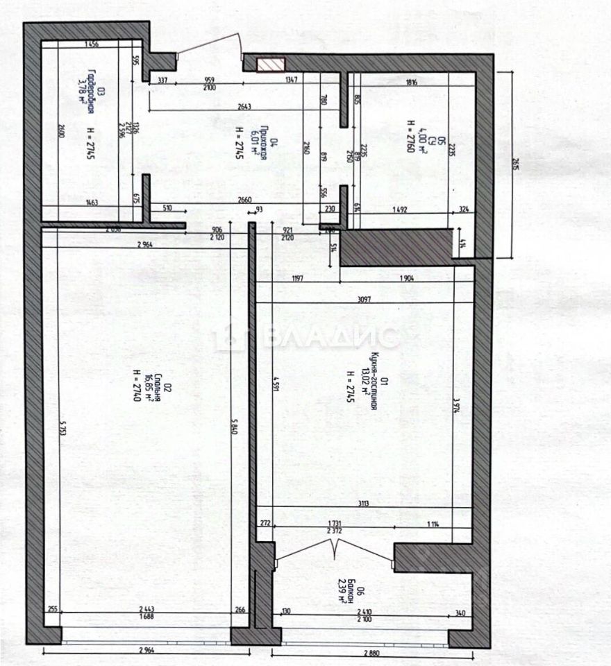 Общая площадь с учетом лоджии: 45,9 кв.м.