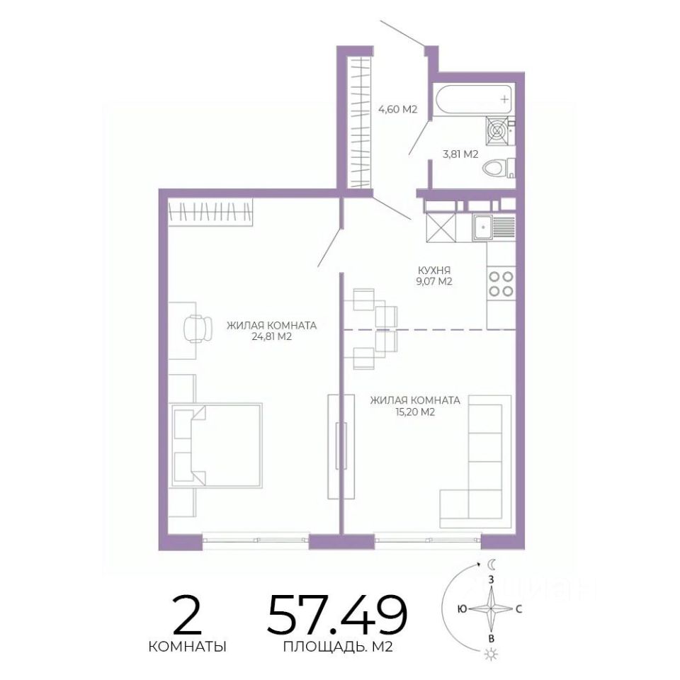 Продаётся 2-комнатная квартира в строящемся доме (2 этап (2 строение)), срок сдачи: III-кв. 2028, общей площадью 57.49 кв.м., на 6 этаже. Новый жилой комплекс "Чаадаев" от застройщика "Территория Жизни" расположен по адресу Россия, Пенза, улица Чаадаева, 60Б/2.