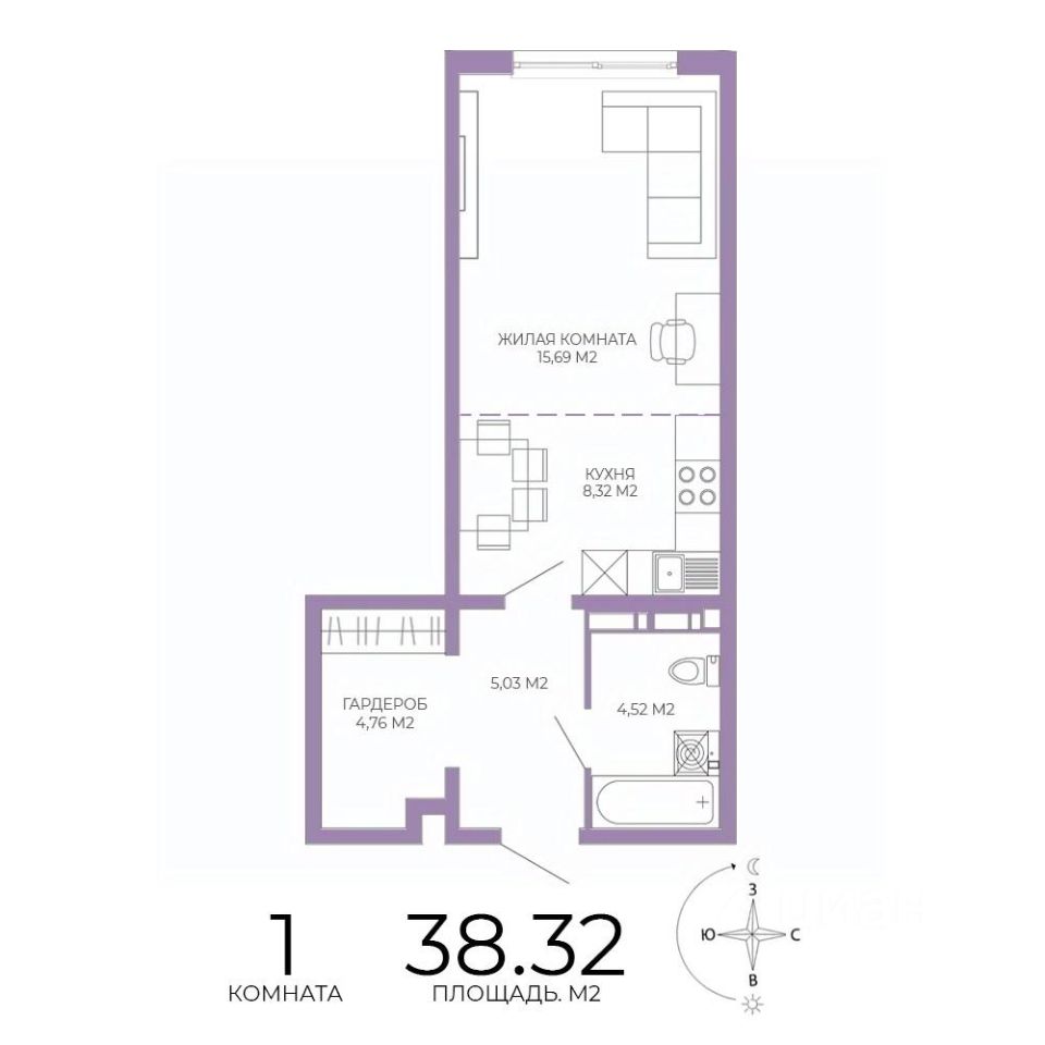 Продаётся 1-комнатная квартира в строящемся доме (2 этап (2 строение)), срок сдачи: III-кв. 2028, общей площадью 38.32 кв.м., на 2 этаже. Новый жилой комплекс "Чаадаев" от застройщика "Территория Жизни" расположен по адресу Россия, Пенза, улица Чаадаева, 60Б/2.