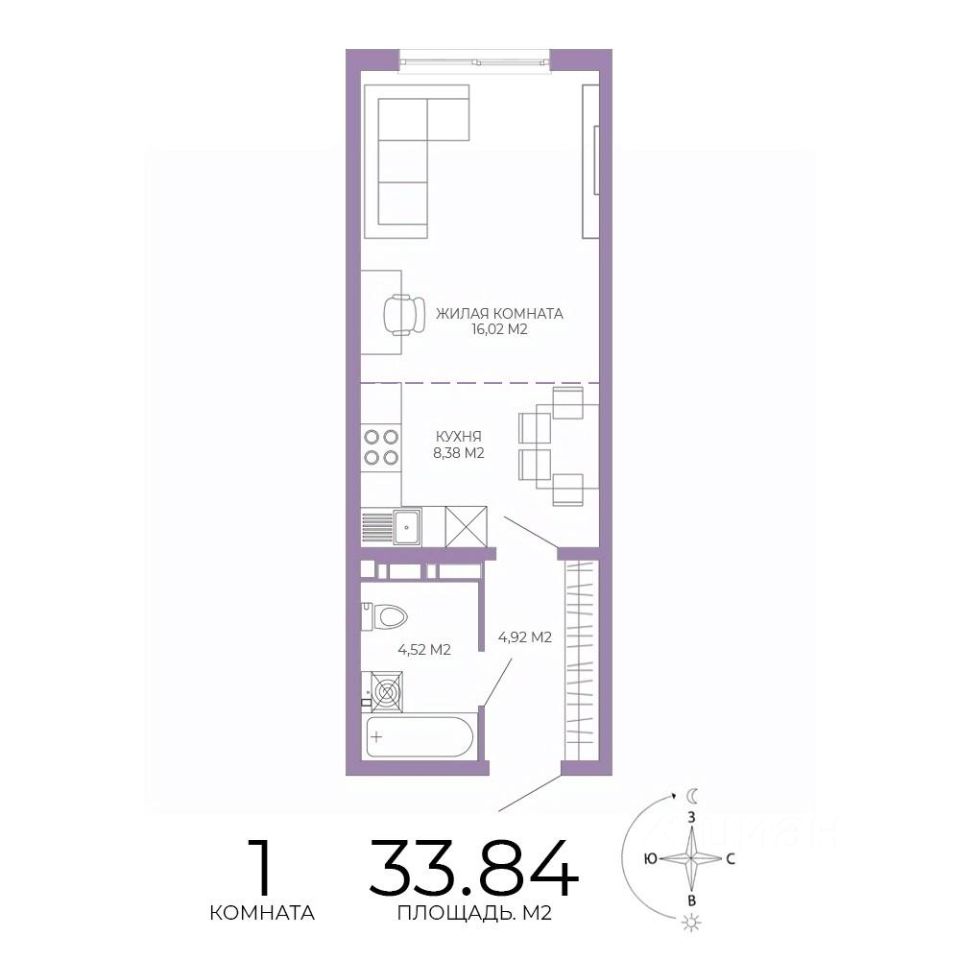 Общая площадь33,84 м²
